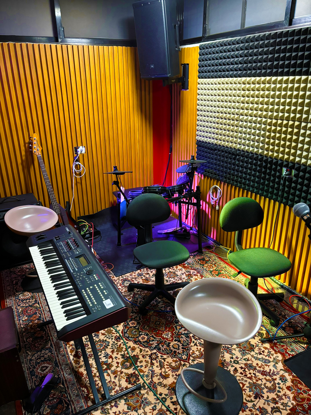 Our studio also features a full range of instruments and amplifiers available for rent at an affordable rate on a per hour basis - perfect for band rehearsals.